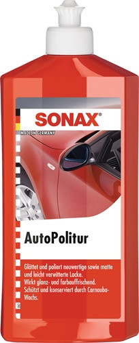 Politur für neuwertige, matte und leicht verwitterte Bunt- und Metallic-Lacke · feinste Schleifmittel reinigen schonend die Lackoberfläche, beseitigen feinste Unebenheiten und wirken glanz- und farbauffrischend · hochwertiges Carnaubawachs schützt nachhaltig vor Witterungseinflüssen · auch mit der Poliermaschine zu verarbeiten Weitere technische Eigenschaften: · Gebinde: Flasche
