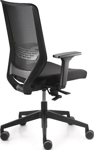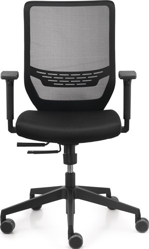 mit Synchron-Technik (mit Armlehnen) · für überwiegend sitzende Tätigkeiten · Kunststoff-Fußkreuz, schwarz · mit hoher atmungsaktiver Netzrückenlehne, mit höhenverstellbarer Lumbalstütze · Stufenlose Federkraftverstellung für ein Körpergewicht von 45 - 125 kg · inklusive Armlehnen, höhen- und breitenverstellbar · 5 cm Sitztiefenverstellung · Bezug 100 % Polyester · Sitzfläche B 480 x T 430 - 480 mm · Sitzhöhe 410-520 mm · Lehnenhöhe 570 mm · Rollen für weiche und harte Böden Lieferung erfolgt zerlegt