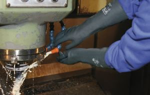 nach EN 388 · EN 374 · Kat. III · Material: Polychloropren · anatomische Form für ermüdungsfreies Arbeiten · gute Flexibilität und ausgeprägtes Handflächenprofil für bestes Tastgefühl und sicheren Griff · Baumwollvelourisierung zur reduzierten Schweißbildung · hoher Tragekomfort · Anwendung: Arbeiten in Laborbereichen, Chemische Industrie, in Galvanikbereichen, Automobilindustrie, Getränkeindustrie Weitere technische Eigenschaften: · Abriebfestigkeit: 1 · Weiterreißfestigkeit: 1 · Stichfestigkeit: 1 · Schnittfestigkeit (Schneidetest): 1 · Ausführung: geraut · Norm: EN388 / EN374-1 · Chemikalienfestigkeit: A = Methanol / K = Natriumhydroxid 40 % / L = Schwefelsäure 96 % · prüfpflichtig: ja · Einstufung: Kategorie III · Variante: Stulpe, geraut, velourisiert · Länge: 385-415 mm · Schichtstärke: 0,65+-0,1 mm