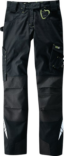 Material: 64 % Polyester, 34 % Baumwolle, 2 % Elastan, ca. 270 g/m² · robuste Canvas-Qualität · Besätze aus Cordura® · Reflektoren aus 3M™ Scotchlite™ Reflective Material · durchdachte Funktionalität und maximaler Komfort durch Elastan · optimale Passform · breite Klett-Gürtelschlaufen zum Einhängen von Werkzeug · verstellbare Hammerschlaufe · Oberschenkel- und Gesäßtaschen · doppelte Zollstocktasche, Handytasche · Karabiner in Herzform Weitere technische Eigenschaften: · Stoffgewicht ca.: 270g/m²