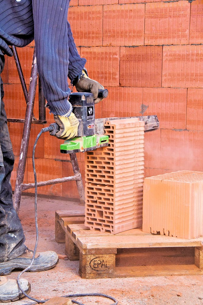 Ausführung: Zum Schneiden von Hochlochziegel (z. B. Poroton), Porenbeton, Holz sowie druckfesten Dämmstoffen im Hoch- und Tiefbau, Trockenbau sowie Zimmereien ∙ Einfaches Herstellen von Ausklinkungen sowie passgenaues Schneiden der Planziegel ∙ Diagonalschnitte in Hochlochziegel problemlos möglich ∙ Zwei gegenläufig arbeitende Sägeblätter ∙ Gebläse-Funktion ∙ Staubschutz für Getriebe/Anwender ∙ Universal Premium Sägeblätter - lange Standzeit, hohe Schnittgeschwindigkeit ∙ Ergonomischer Handgriff - an zwei Seiten montierbar