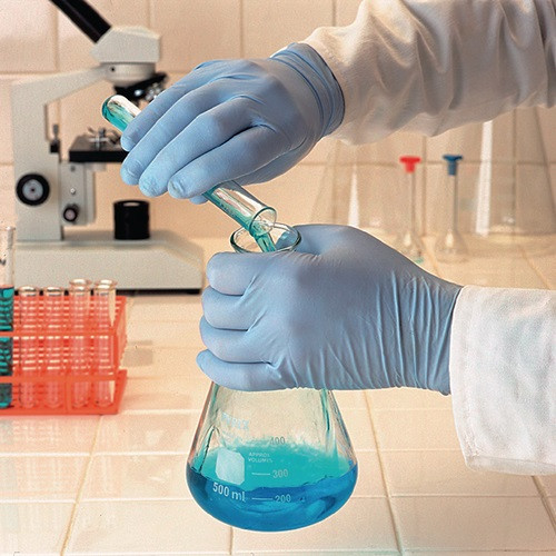 nach EN 374 · Kat. III · AQL: 1,5 · Material: Nitril · strukturierte Fingerspitzen · puderfrei · mit Rollrand · hervorragende Chemikalien- und Mechanikeigenschaften · ausgezeichneter Tragekomfort und Beweglichkeit · leicht und kühl · kein Wachs · kein Silikon · kein Weichmacher · verbesserte Griffsicherheit · für Spezialanwendungen geeignet · antistatisch Box à 100 St. · Anwendungen: Laboranalysen, chemische Industrie, Notdienste, Elektronik, Handhabung komplexer Teile Weitere technische Eigenschaften: · Länge ca.: 240mm · Ausführung: puderfrei, mit Rollrand · Stärke ca.: 0,10mm · Norm: EN 374 · Chemikalienfestigkeit: J = n-Heptan / K = Natriumhydroxid 40 % / T = Formaldehyd 37 %