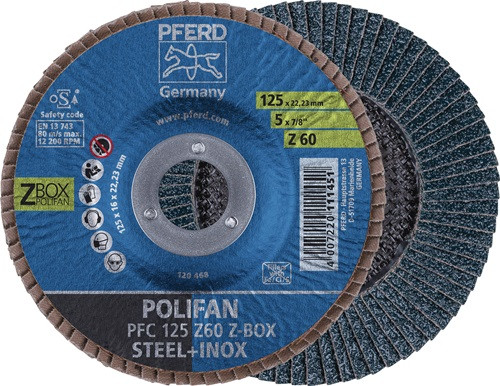 Fächerscheibe POLIFAN Z BOX D.125mm K.Z-60 kon.INOX ZK 10er Box PFERD