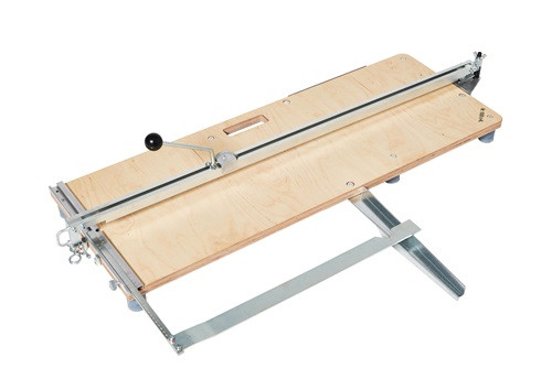 mit unterer Brechvorrichtung und großem ausklappbarem Auflagenhalter · Grundplatte aus Multiplex · mit glanzverzinkter Führungsschiene und geschraubtem Führungsprofil · großer Anschlagwinkel mit Diagonal-Einkerbung · inkl. 20 mm Titan-beschichtetes HM-Rädchen Weitere technische Eigenschaften: · Typ: c-AL · Ausführung: mit Brechvorrichtung