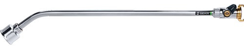 robustes Gießgerät mit individuell regulierbarem Kugelventil · Gießkopf für großvolumigen, weichen Wasserschleier · großer Wasserdurchfluß · kompatibel mit allen GEKA plus-Gießköpfen · Gießkopf, Auslaufrohr und Überwurfmutter aus Leichtmetall · Kugelventil aus Messing verchromt