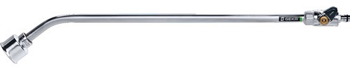 robustes Gießgerät mit individuell regulierbarem Kugelventil · Gießkopf für großvolumigen, weichen Wasserschleier · großer Wasserdurchfluß · kompatibel mit allen GEKA plus-Gießköpfen · Gießkopf, Auslaufrohr und Überwurfmutter aus Leichtmetall · Kugelventil aus Messing verchromt