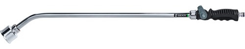 leicht und bequem in der Handhabung mit weichem Wasserschleier · Material: Gießkopf, Auslaufrohr und Überwurfmutter aus Leichtmetall, Griff aus Kunststoff, Bajonetteinsatz aus Messing, Anschlussstecker aus Messing verchromt