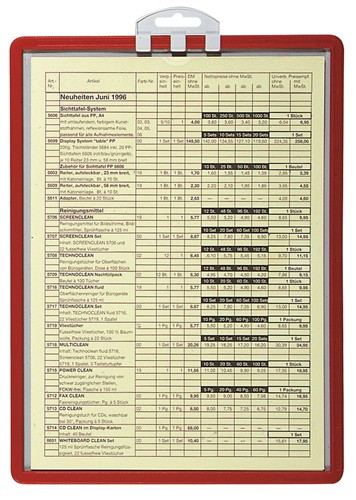 zum Aushängen z.B. von Sicherheitshinweisen, Informationen, Bedienungsanleitungen, Telefonverzeichnissen etc. · reflexionsarm, mit voll umlaufendem roten PP-Rahmen und versetzbarer Aufhängung (hoch und quer einsetzbar) · VE = 5 Stück