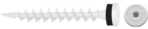 Flachkopf · glasfaserverstärktes Nylon mit EPDM-Dichtung · Spezialschraube für die Direktbefestigung in Wärmeverbundsystemen (WDVS) · zur Befestigung von Wandanschlußprofilen, Blechen, Sockelschutzleisten, Gesimsabdeckungen, Schildern etc. Schraubenlänge 80 mm · Nutzlänge bis 10 mm · Kopfdurchmesser 16 mm · einschraubbar in Durchgangslöcher bis D. 8 mm · Antrieb TX25 scharfe Bohrspitze · ohne Vorbohren in Putz Weitere technische Eigenschaften: · Ausführung: Nylon glasfaserverstärkt · RAL: 9003