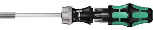 mit Ratschenfunktion, integriertem Magazin, magnetischer Bitaufnahme und Mehrkomponenten-Kraftform-Griff · Ratsche umschaltbar (rechts/fixiert/links) geeignet für Bits mit 6,3 mm (1/4")-Außensechskantantrieb C 6,3 · maximales Drehmoment bis zu 50 N.m · 6-kant-Klinge Weitere technische Eigenschaften: · Länge: 230mm · geeignet für: Bits 6,3 mm (1/4 ") DIN ISO 1173-C 6,3