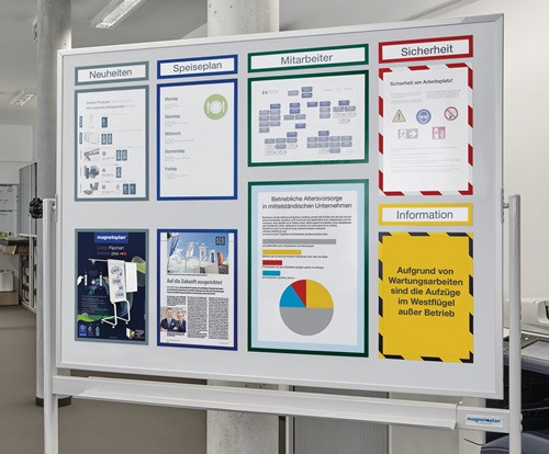 magnethaftend · im Hoch- und Querformat einsetzbar · einfaches und schnelles Austauschen · DIN A4 · VE = 5 Stück