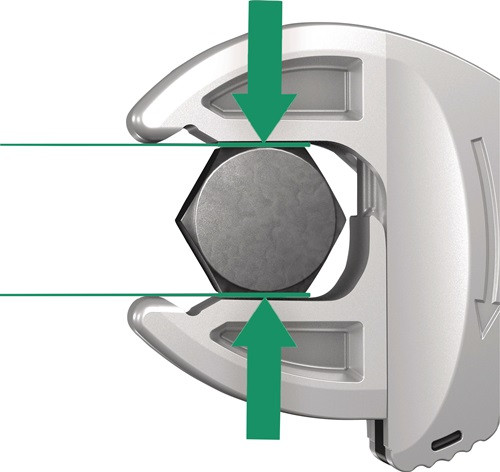 verstellbar · selbstjustierend · zugreifend · ratschend Besondere Produktvorteile: automatisch stufenlos zugreifend · schraubenschonend (glatte Backen) · Ratschenfunktion (durchgängiges Schrauben ohne Absetzen) · kleiner Rückschwenkwinkel von nur 30° Weitere technische Eigenschaften: · Oberfläche: matt verchromt · Material: legierter Werkzeugstahl