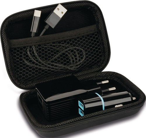 praktisches Etui für jede Reise · 4-teilig · Ladestecker und Ladekabel · Inhalt : Etui, 12 V Ladestecker 2-Port, 230 V Ladestecker 2-Port, Daten- und Ladekabel Typ-C (Art.-Nr. 4000 363 006) bzw. Daten- und Ladekabel lightning (Art.-Nr. 4000 363 007) · Technische Daten: 1 x 230 V Netzteil, 1 x USB Ladestecker, 1 x Daten- und Ladekabel Typ-C bzw. lightning · Netzteil: Input: 110 / 240 V AC, 50 / 60 Hz · Output: max. 2.100 mA · USB-Ladestecker: Input: 12 / 24 V DC · Output: 5 V, max. 2.400 mA · mit intelligenter Geräteerkennung für max. Ladeleistung · Kabel: Input/Output: 5 V · max. 3.000mA (Typ-C) bzw. max. 2.400mA (Lightning) Weitere technische Eigenschaften: · Inhalt: 4-teilig · Gebinde: Set