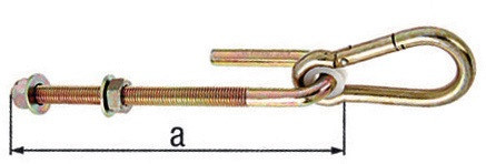 Material: Stahl roh · Oberfläche: galvanisch gelb verzinkt · zum Durchschrauben · Karabinerhaken nicht einzeln erhältlich Weitere technische Eigenschaften: · Oberfläche: galvanisch gelb verzinkt · Maß a: 200mm