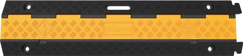 mit zwei Kanälen · zum Schutz von Schläuchen oder Kabeln, die nicht dauerhaft verlegt sind · Abmessung Kabelkanäle H 32 x B 30 mm · keine Befestigung nötig · aus schwarzem vulkanisiertem Vollgummi und rutschhemmende Oberfläche · mit gelben Schutzdeckel und Tragegriff · überfahrbar bis zu einem Achsgewicht von 8 t · Endlosmontage mit Zapfen/Nut-System