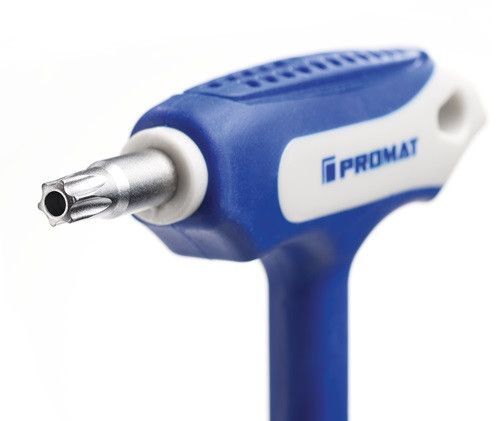 Schraubendreher m.Quergr.T 27x150mm Seitenabtrieb TX m.Bohrung PROMAT
