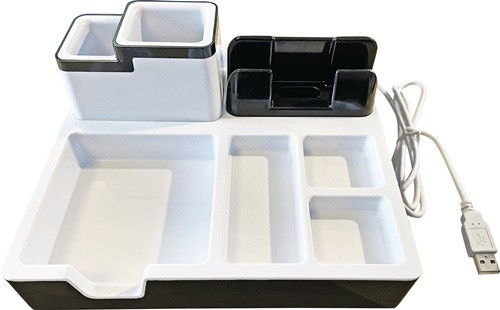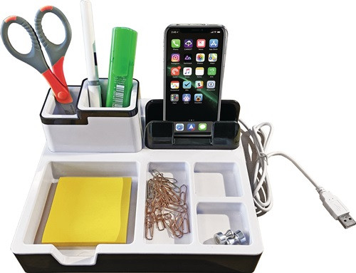 mit 3 USB-Anschlüssen ∙ Platz für Büroklammern, Stifte, Post-It-Blöcke usw. ∙ kompatibel mit fast allen Smartphones und Tablets ∙ Farbe schwarz/weiß