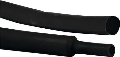dünnwandiger Wärmeschrumpfschlauch mit einer Schrumpfrate von 2:1 · Betriebstemperatur von -55°C bis +125°C · min. Schrumpftemperatur +70°C · Mindesttemperatur zur vollständigen Schrumpfung +100°C · flammwidrig · Freigaben: UL224 125°C VW-1 600 V file E204071, CSA file no. 1934614 · erfüllt RoHS und Sony-SS-00259 · schwarz · in praktischer Abrollbox