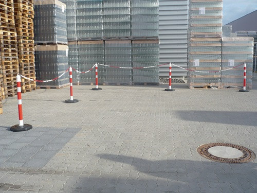 mit Sechseckfuß · Polypropylen · Pfosten Ø 63 x H 1000 mm · Fuß 370 x 75 mm · schnelle Verbindung des Fußes mit dem Pfosten durch Bajonettverschluss · Pfosten rot mit 2 weißen, reflektierenden Streifen · mit Öse am Pfostenkopf Weitere technische Eigenschaften: · Fuß-Ø: 370 x 75mm · Gewicht: 4kg · Ø: 63mm