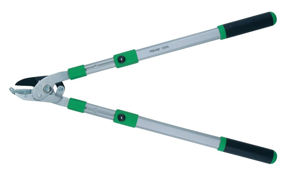 Amboss-Astschere · leichte Ausführung durch Aluminium-Griffe · Kälteschutz-Handgriffe · 6-fach einstellbare Teleskop-Griffe · Gesamtlänge max. 980 mm