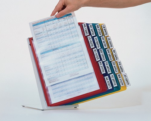 mit Profilrahmen · standfester Stahlblech-Tischständer mit kratzfester Kunststoffbeschichtung · mit 10 bzw. 20 Sichttafeln · Ausführung mit 10 Sichttafeln: je 2 Stück in schwarz, rot, dunkelblau, gelb und grün · Ausführung mit 20 Sichttafeln: je 5 Stück in grün, rot, gelb und dunkelblau · inkl. Kunststoffreiter mit Beschriftungsetiketten