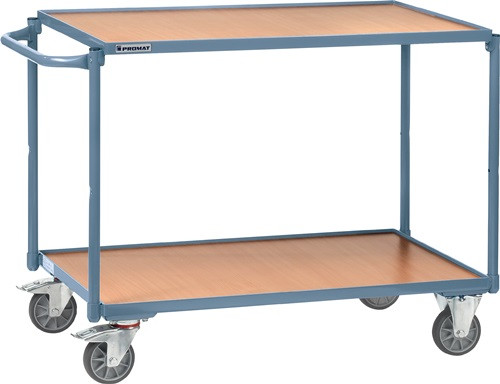 Tischwagen 2 Ladeflächen L1000xB600mm blau Trgf.300kg Schiebebügel waagerecht