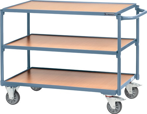 Tischwagen 3 Ladeflächen L850xB500mm blau Trgf.300kg Schiebebügel waagerecht