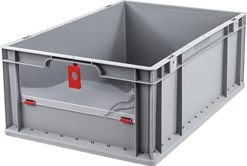 Transportstapelbehälter L600xB400xH220mm grau rot PP m.Klappscheibe ALLIT