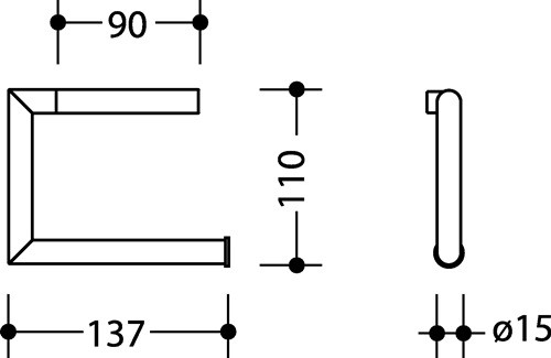 - U-förmiger Halter, nach rechts geöffnet - in minimalistischer und reduzierter Formensprache mit Gehrungsschnitt - klappbar - aus hochwertigem Edelstahl - zur Wandmontage mit verdeckter Befestigung - Abmessungen 137 mm breit, 110 mm hoch, 15 mm tief - inklusive korrosionsfreiem HEWI Befestigungsmaterial Artikel: HEWI 162.21.100XA/162.21.10040 Weitere technische Eigenschaften: · Farbe: XA · Modell: 162.21.100XA