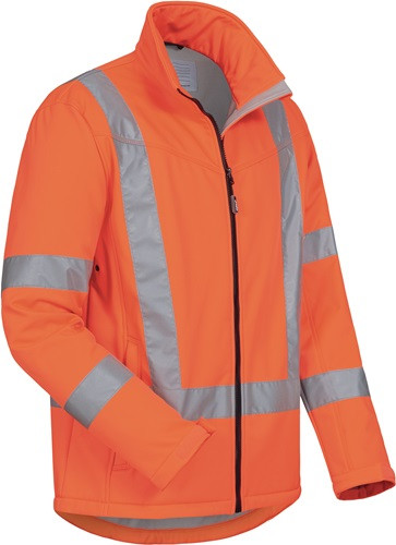 EN ISO 20471 Kl. 3, EN ISO 13688 · Obermaterial: 100 % Polyester, 3-Lagenlaminat (Softshell) · Atmungsaktivität: 800 g/m²/24 h · Wassersäule: 2000 mm · Softshell-Material ist wind- und wasserdicht sowie atmungsaktiv durch 3-Lagenlaminat · hoch abriebfest · angenehm zu tragen durch Fleecematerial innen · verstellbarer Ärmelsaum · Saum weitenverstellbar · 2 seitliche Hüfttaschen mit Reißverschlüssen · ergonomisches Design · Reflexmaterial vorne, hinten, an Schulter und Ärmel